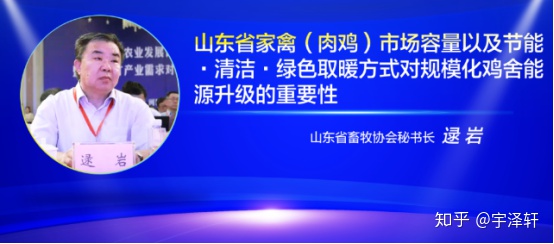 逯岩秘书长致辞过程中还简单介绍了一下肉鸡市场的体量,肉鸡凭借产率高、效益好、最适合规模化养殖、“一高三低”等优势,在中国乃至全世界市场体量上升飞快,生产空间巨大。受中国人肉食消费习惯影响,鸡肉在全国的消费量占比也达到了20%。养殖模式上,特别是肉鸡业,山东在立体饲养、环控智能等方面引领着全国养殖业的发展。