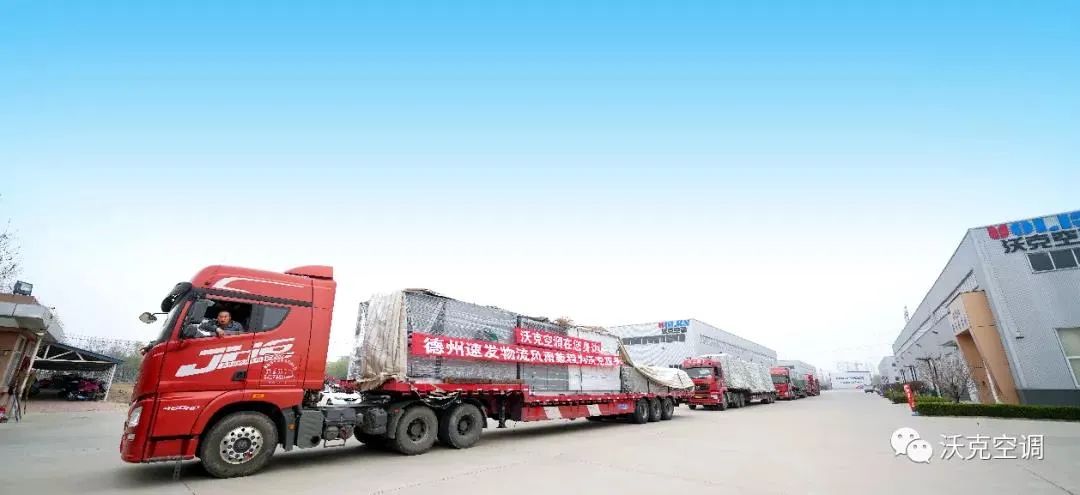 沃克空气能直膨机组横店影视基地项目设备如期交付。5辆货车齐发货,一辆辆满载的货车带着沃克满满的诚意,把每一台高品质的沃克空气能直膨机组及时交付到客户手中。